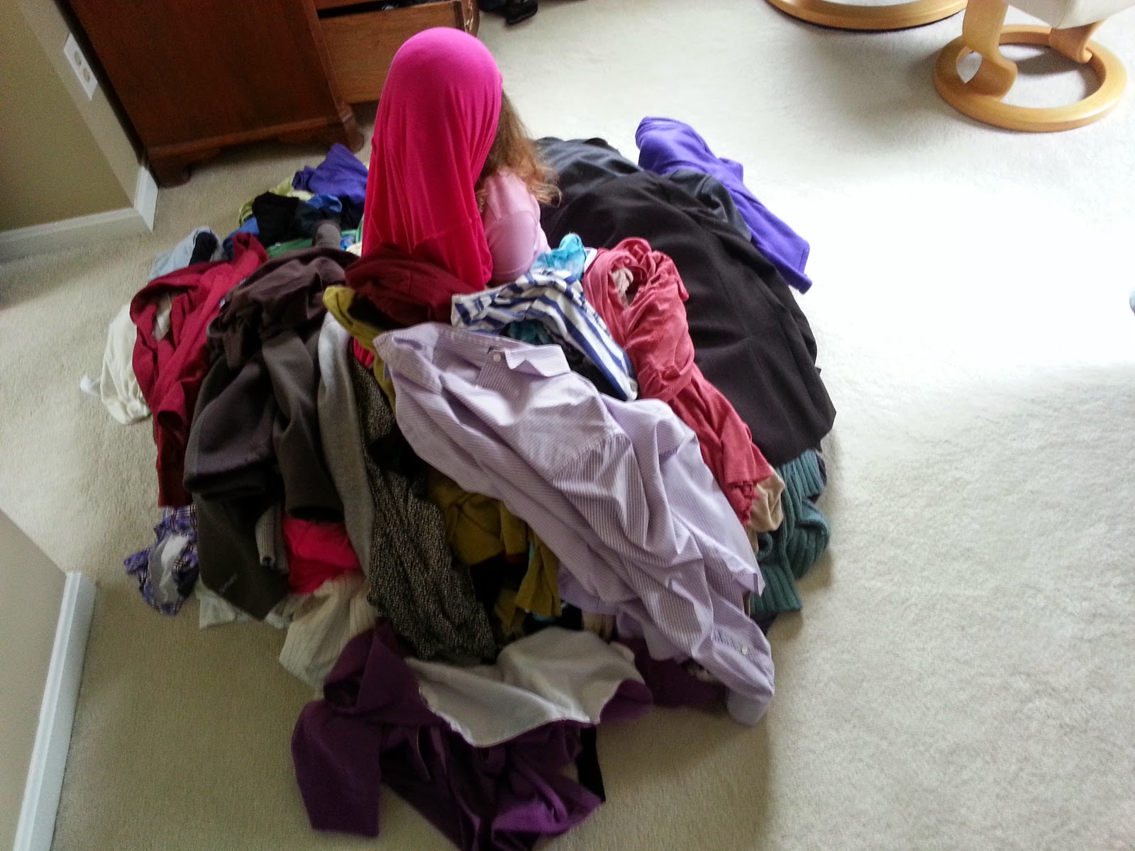Rather than focusing on what to get rid of, Kondo emphasizes the importance of what to keep. She insists upon the magic of being surrounded only by those things we love. To decide what is worthy of staying in the home, she asks the reader to take every item from the same category (in this case, shirts) and gather them all in one place. I dumped out the contents of three under-the-bed storage bins, cleared out my dresser, and removed every shirt, sweater, and jacket from its hanger. When I heaped them all together, I was shocked by their abundance. The pile stood two feet tall and dwarfed my 45-pound 4-year-old daughter. And remember, that's just the shirts.